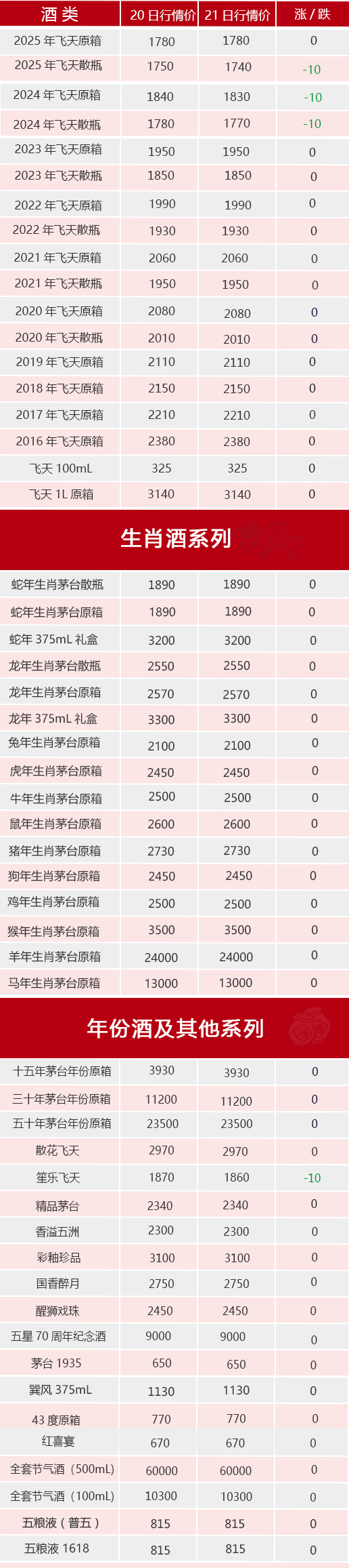 - 2025/10/22·飛天下跌。10月21日茅臺行情價。日期自選,蛇茅新出生日酒?