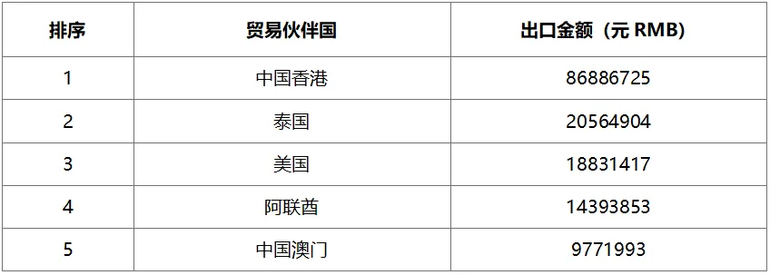 2024年6月白酒主要出口貿易國按金額排序