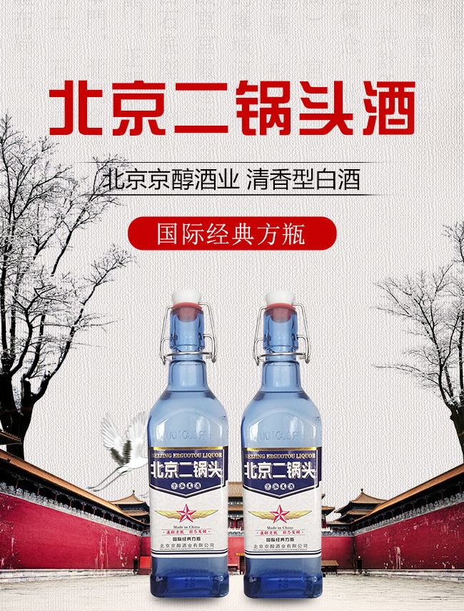 產(chǎn)品名:北京二鍋頭酒國際經(jīng)典方瓶清香型白酒【42°500ml】
