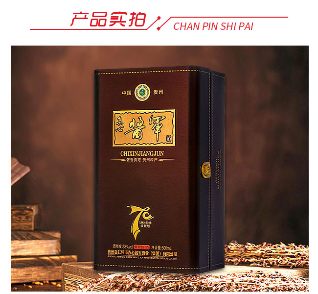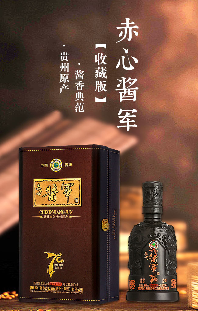 赤心醬軍酒業(集團)堅持“秉承傳統釀造工藝,傳承企業文化”的經營理念,注重酒文化與人與自然的結合,精選本地優質紅高粱、小麥,以赤水河河水為酒引,嚴格按照端午采曲、重陽投料之傳統工藝生產。通過九次蒸煮、八次堆積發酵、七次取酒,通過長期窖藏,并由集團公司總工程師精心勾兌,產品具有酒體醇厚、醬香突出、幽雅細膩、回味悠長、空杯留香之特點。