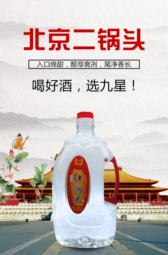 北京九星酒業(yè)有限公司是一家集產(chǎn)品研發(fā),生產(chǎn)銷售為一體的現(xiàn)代化白酒規(guī)模企業(yè)。目前開發(fā)的主要是皇城門系列白酒產(chǎn)品。是以優(yōu)質(zhì)高粱為主要原料,用大麥、小麥、豌豆制成大曲,輔多種微生物為糖化酵劑,再經(jīng)過長期發(fā)酵,緩慢蒸餾,取之精華,經(jīng)多年陳貯后,精心勾兌而成。以“清香幽雅,醇厚綿甜,尾昧爽凈”的獨特風格,深受各界朋友的青睞。