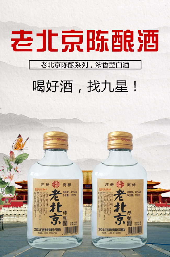 北京九星酒業有限公司是一家集產品研發,生產銷售為一體的現代化白酒規模企業。目前開發的主要是皇城門系列白酒產品。是以優質高粱為主要原料,用大麥、小麥、豌豆制成大曲,輔多種微生物為糖化酵劑,再經過長期發酵,緩慢蒸餾,取之精華,經多年陳貯后,精心勾兌而成。以“清香幽雅,醇厚綿甜,尾昧爽凈”的獨特風格,深受各界朋友的青睞。