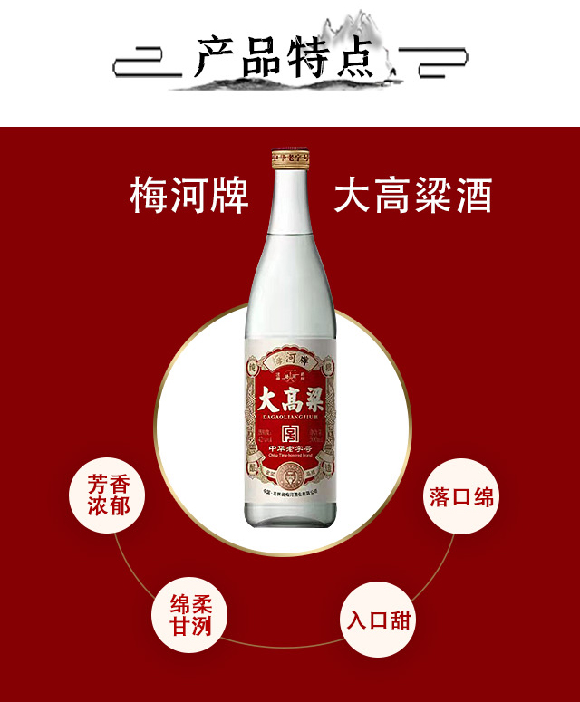 產(chǎn)品名:梅河牌大高粱酒 濃香型白酒【42° 500ml】