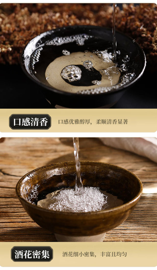 口感:入口綿甜,香味協調,醇厚爽冽,尾凈香長、風格突出