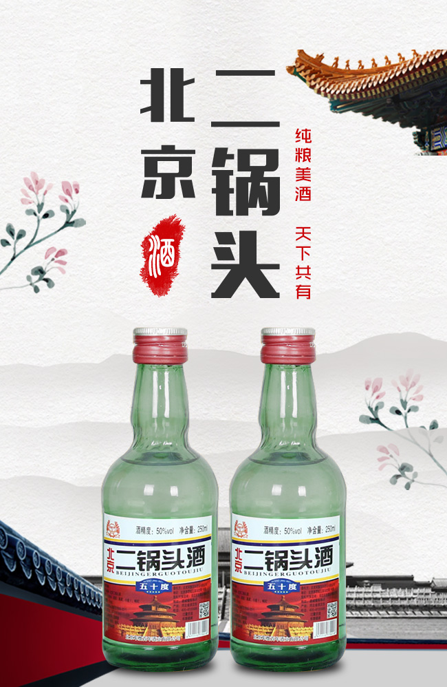 公司本著質量為主,信譽至上的原則經營北京二鍋頭酒,獲得了客戶的高度評價。北京二鍋頭酒歷史悠久,工藝考究,以優質高梁為主要原料,用大麥、小麥、豌豆制成大曲,輔多種微生物為糖化發酵劑,再經長期發酵,緩慢蒸餾,取之精華,經十余年陳貯后,精心勾兌而成。