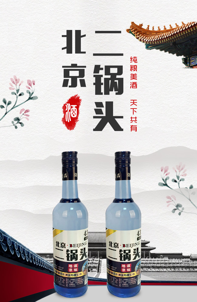 公司本著質量為主,信譽至上的原則經營北京二鍋頭酒,獲得了客戶的高度評價。北京二鍋頭酒歷史悠久,工藝考究,以優質高梁為主要原料,用大麥、小麥、豌豆制成大曲,輔多種微生物為糖化發酵劑,再經長期發酵,緩慢蒸餾,取之精華,經十余年陳貯后,精心勾兌而成。