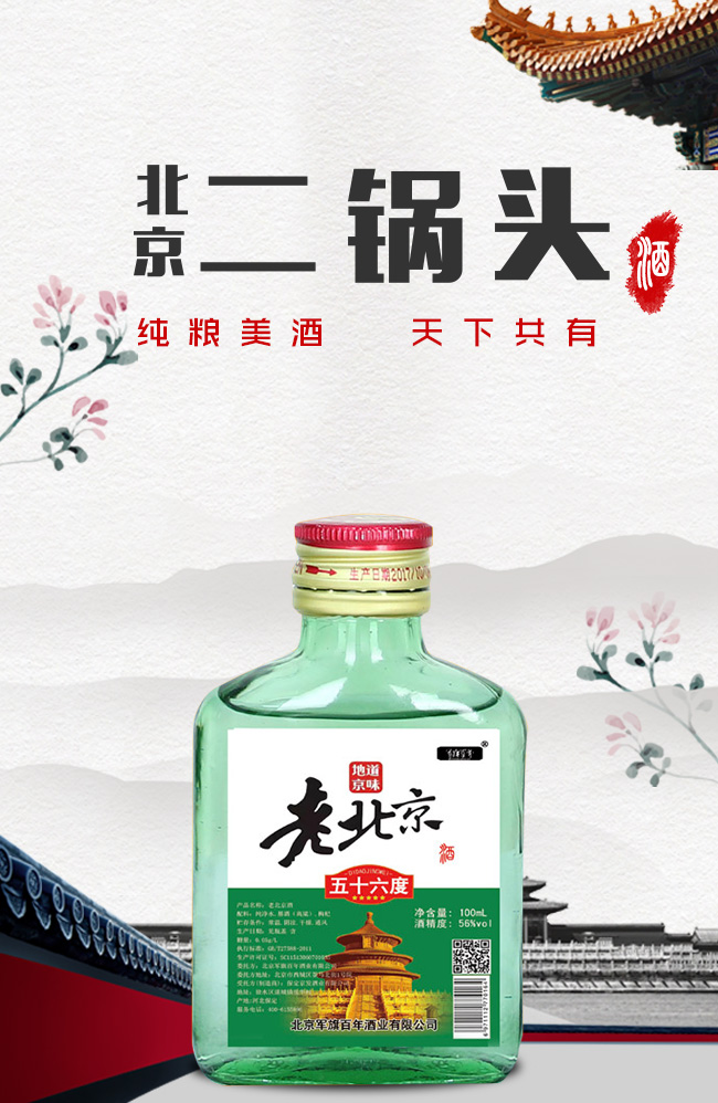 產(chǎn)品名:軍旗百年老北京酒56°100ml綠瓶