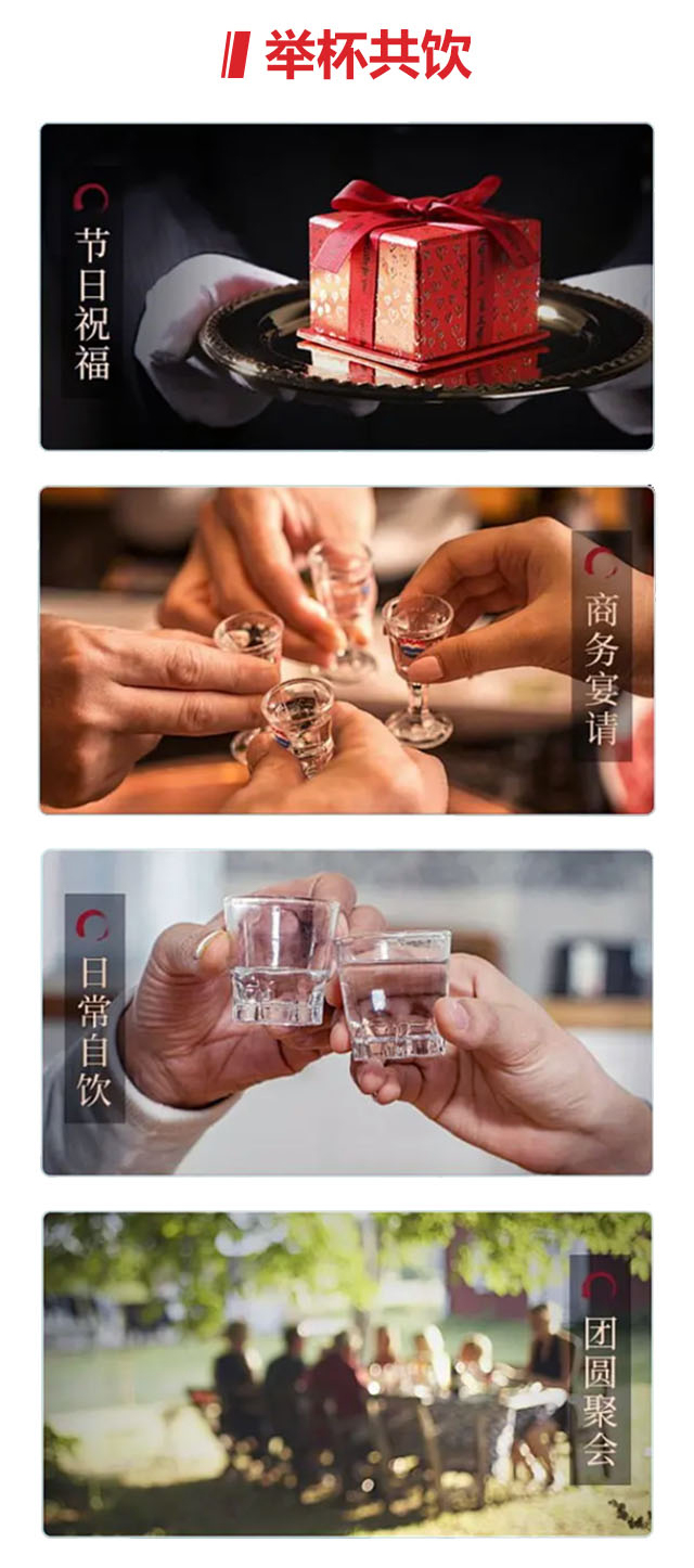 適飲場合:家庭聚會(huì)、自斟自飲、禮節(jié)拜訪、商務(wù)宴請、收藏等