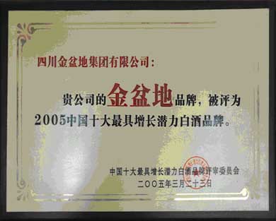 公司先后榮獲“食品工業龍頭企業”、“馳名商標”、“國家地理標志保護產品”、“四川八大原酒企業”、“四川產品”、“川酒新金花”、“首屆喜慶產品龍頭品牌”等多項殊榮。