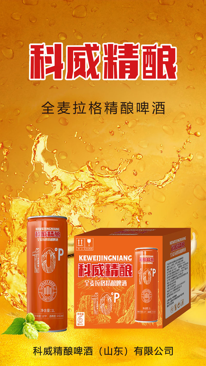 科威精釀啤酒采用進口麥芽釀造,公司采用不銹鋼發酵罐,低溫發 21天,口感醇厚,麥香濃郁。