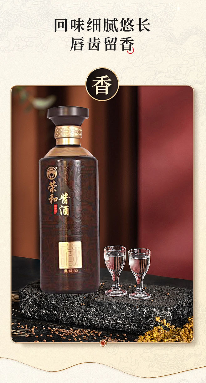 其中榮和經典酒以中庸和諧的思想為文化理念,提倡健康快樂、養身養心的生活方式,體現了“人生須盡歡、醬酒養千年”精神境界。2013年,“榮和燒房”干曲倉舊址被列為“全國重點文物保護單位”文化城至今保留“榮和燒房”的歷史見證。