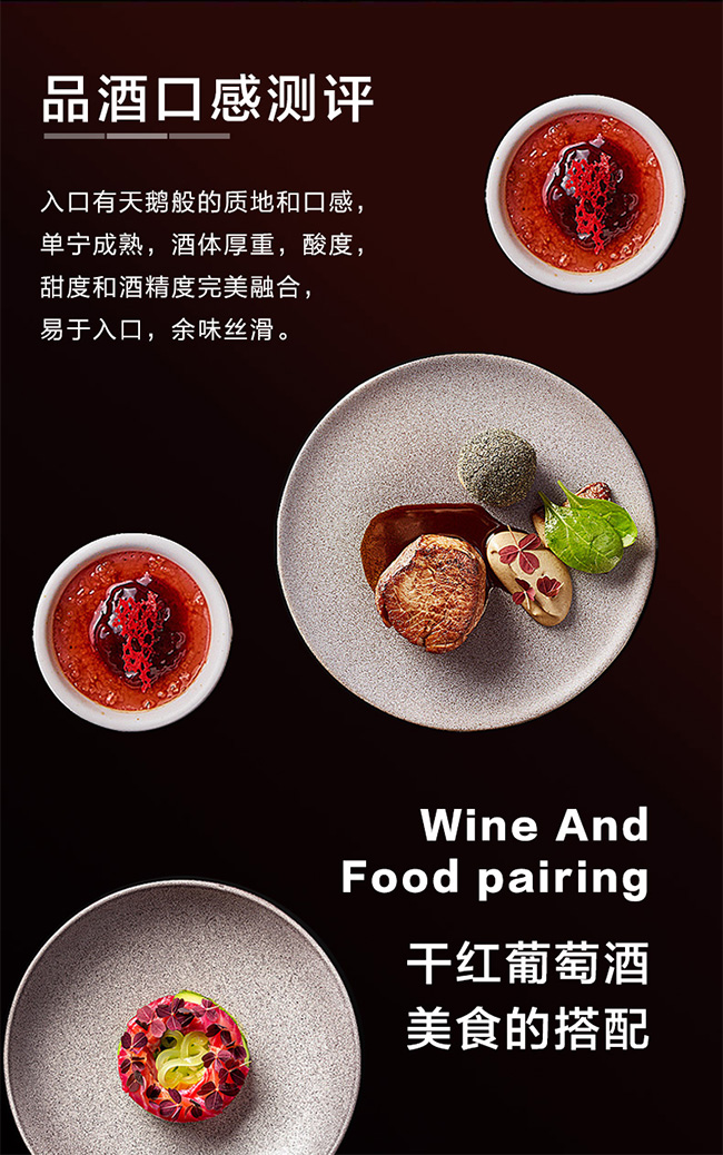 酒評:口感細膩穩(wěn)重,個性突出的酒體環(huán)繞口腔,單寧柔和恰當(dāng),酸度適中,回味適中。