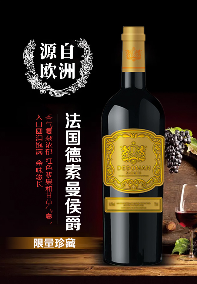 產品名:法國侯爵干紅葡萄酒【14.5度750ml】