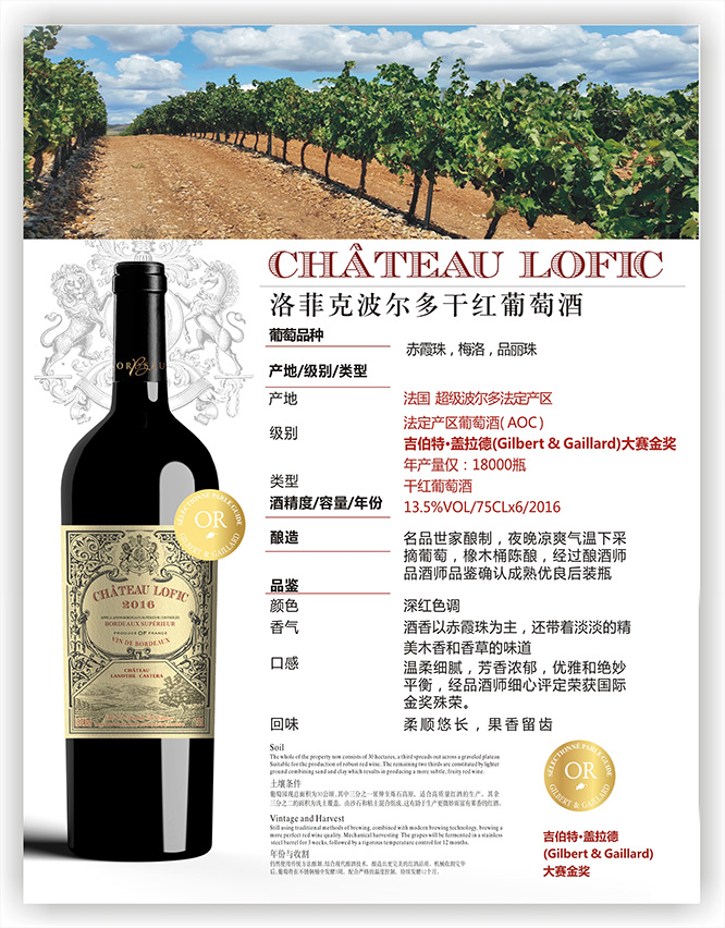 產品名:洛菲克波爾多干紅葡萄酒13.5°750ml