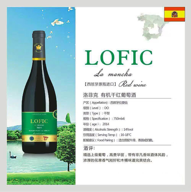 產品名:洛菲克有機干紅葡萄酒14°750ml