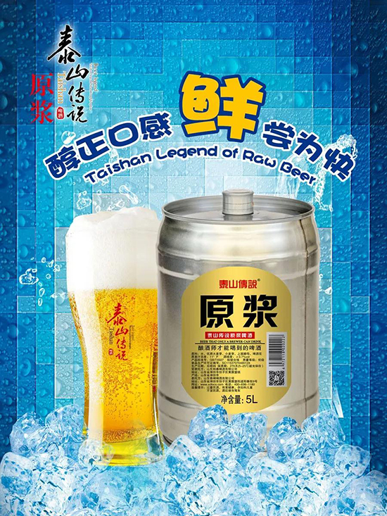 泰山傳說原漿啤酒,一種自然的味覺刺激,一種醇厚的麥芽香氣,泡沫細膩持久,喝一次相信你就會喜歡上入口時的滋味。