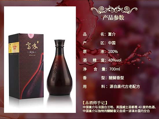富介官邑:“純糧的澀苦、葡萄的果香、葡萄的果糖與東北大米的甜、白蘭地及米酒香合成了天然醍醐味”;其獨特的天然醍醐香自成一派。太宗以介于葡萄酒與燒酒之間;以中庸之道損益造酒,富介酒沿用其秘方優選南方野山刺葡萄與北方勤得利農場優質糧食釀造,富介酒在南北原料不同工藝流程的相互碰撞下、釀造出不一樣的富介酒。醍醐香之獨特在于它的灌頂,酒少喝,但很嗨!而不上頭!一口灌頂,微微暈!兩口有點飄飄然,三口品到其真味,深厚的味感越喝越有厚重感!難怪富介酒與唐代太宗損益造酒如此吻合,原來當時太宗與貴族群們早已有養生之概念。